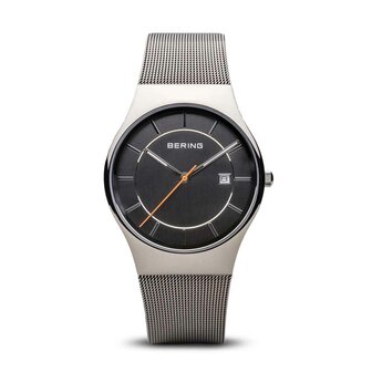 Grijs - Wijzers (u,m,s) : zilverkleur - zilverkleur - oranje