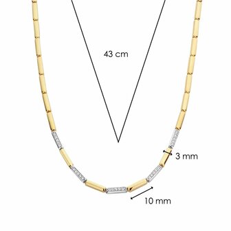 Deze TI SENTO – Milano gold-plated zilveren ketting 3997ZY/42 bestaat uit een reeks van sterling zilver en gold-plated elementen. De ketting is vervaardigd uit 925 sterling zilver en plated met 18k geelgoud. Ga voor een stralende look met dit verfijnde statement piece. De ketting is 42 cm en niet verstelbaar in lengte.