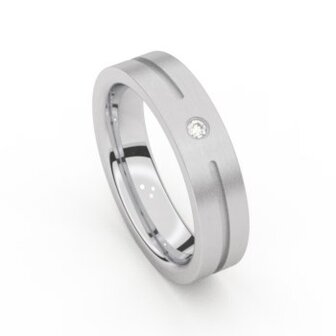 Staal * Ringbreedte +- 5 mm * Langsmat, Parelmat * 1 x Diamant 0,025 ct (SI, G-H)