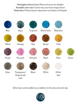 Hars in verschillende kleuren verkrijgbaar.