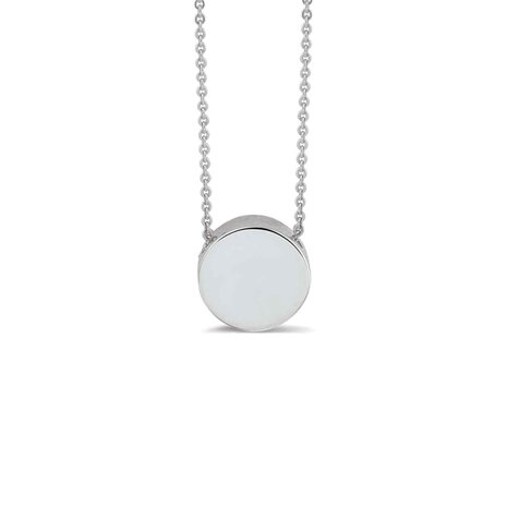 Zilveren hanger, Ø 7.5 mm, en collier. Dit kettinkje wordt kort gedragen, op zo'n 42 cm. Dit sieraad wordt aan de achterkant gevuld met as en wordt vermengd met onze speciale hars. U kunt het kettinkje ook dragen met de as aan de voorkant.