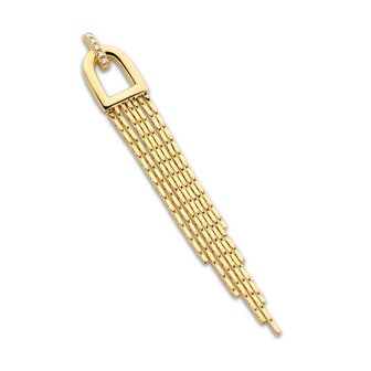 Feestelijke oorbellen met franjes, trapsgewijs uit een elegante diamanten boog. Geïnspireerd door de vorm van betoverende tuinpoorten, ontgrendel je een geheime scène van schoonheid en verwondering in je.