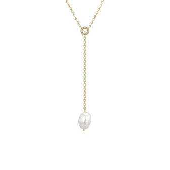 925 Sterling Zilver | 5,00 x 1,40 mm | Zoet water Barok Pearl: 1st, Witte Diamant: 10st - 0.03 cts | Verstelbare maten: (40-45cm)